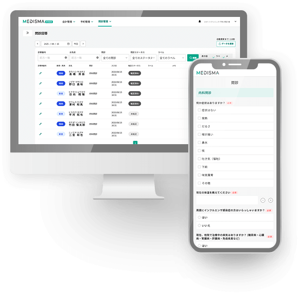 MEDISMA 問診は、診療効率を向上させ、患者回転率、診療単価の向上を目指した高機能WEB問診システムです。