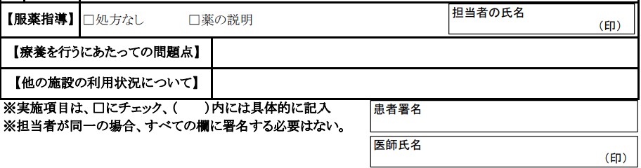 初回用の場合、計画書の内容に患者の同意を得て署名をもらい、写しを交付して原本はカルテに記録します。