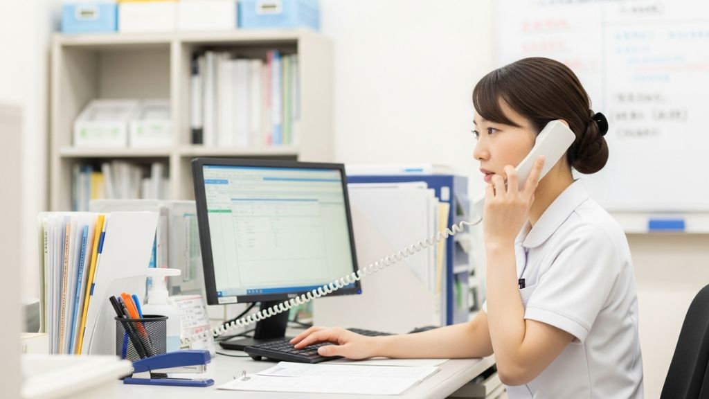 発熱患者の動線分離には、事前のトリアージが不可欠です。しかし、受付や電話での問診は時間がかかり、スタッフの業務を圧迫します。特に流行期には電話対応が増え、スタッフの疲弊につながります。