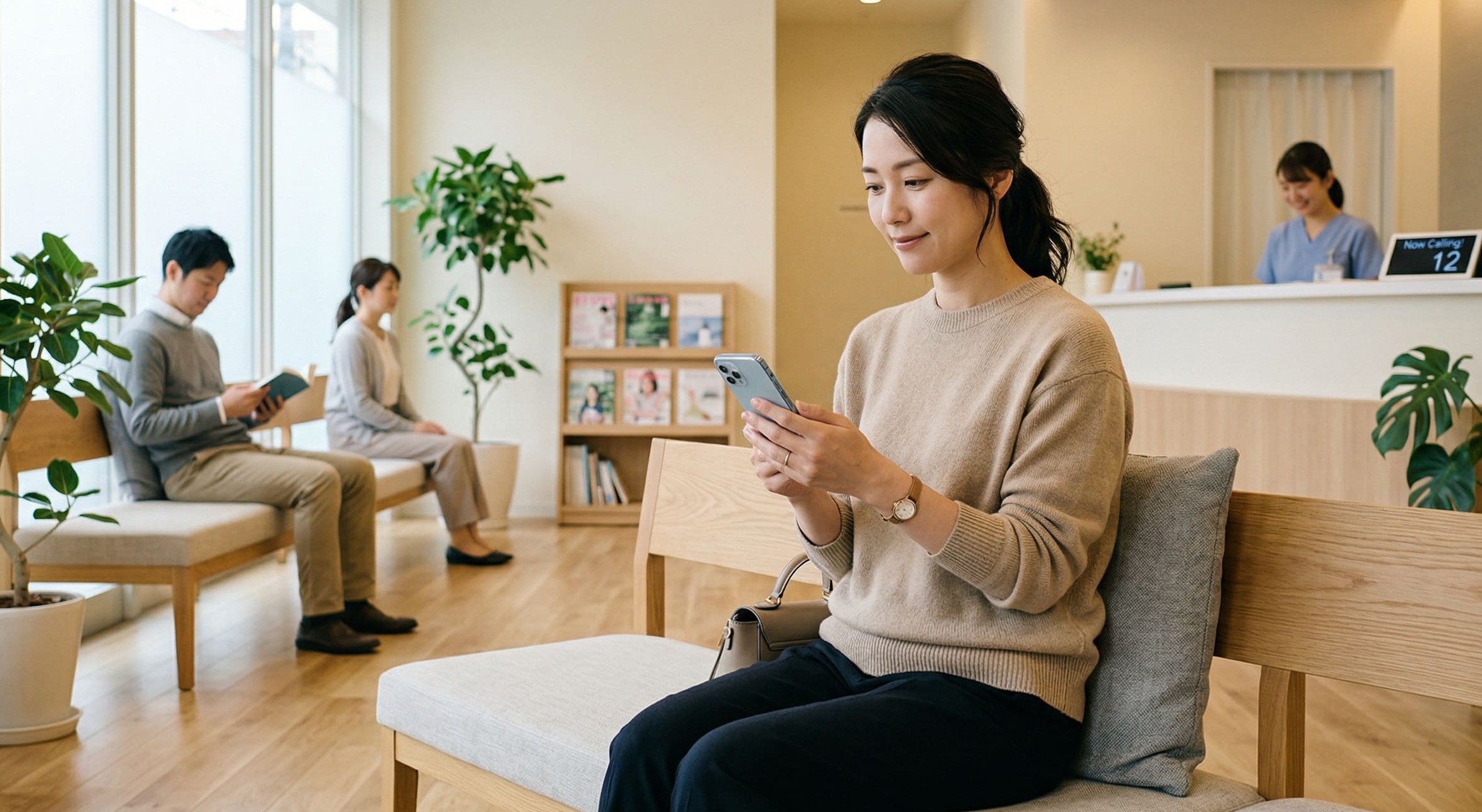 Web予約で順番を取得し、LINE通知や自動音声、電話案内で進行状況を確認できれば、患者は院内で長時間待機せずに済みます。