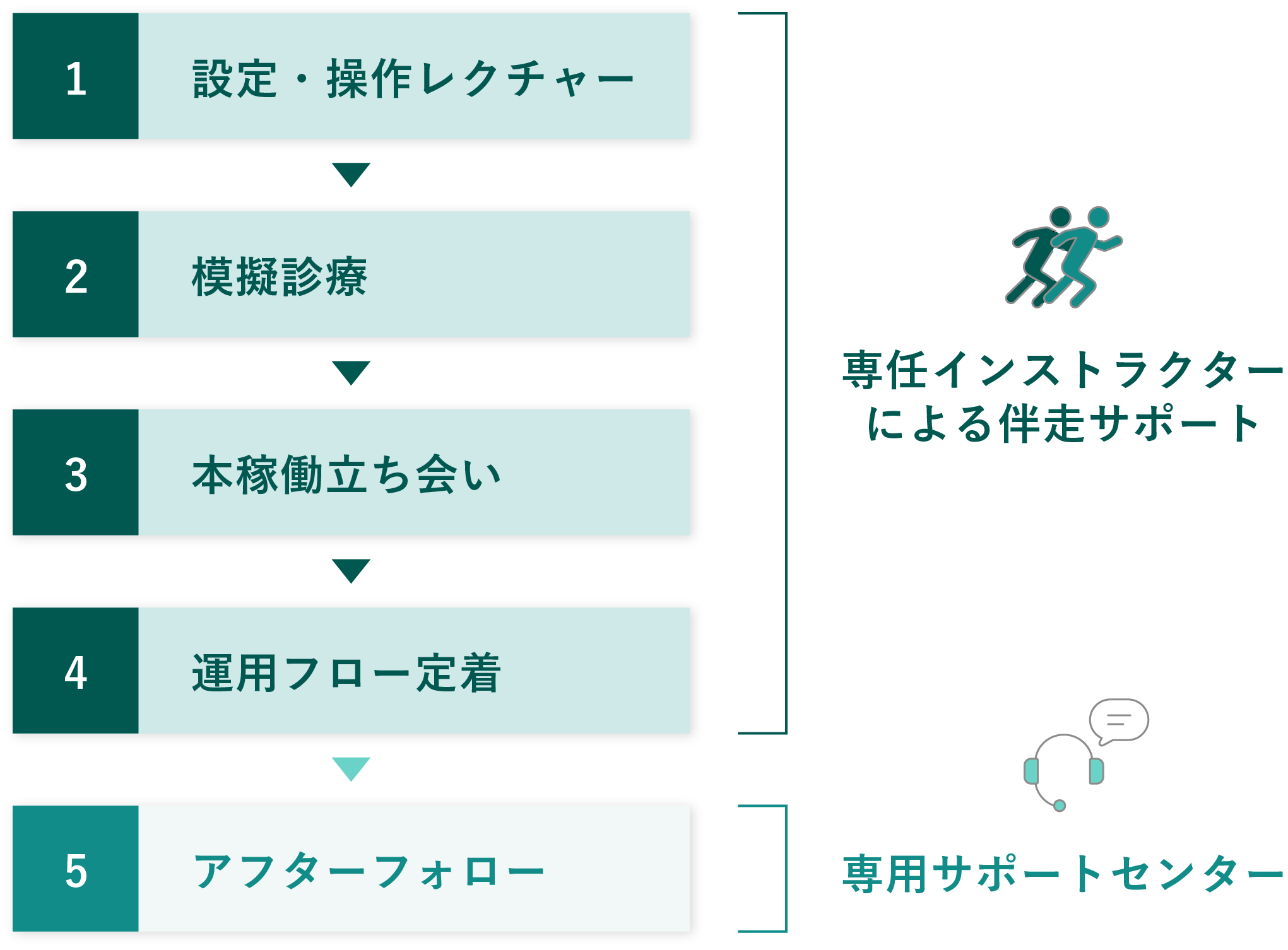 通常、1ヶ月〜2ヶ月程度でご利用開始いただけます。電子カルテとの連携やスタッフ様へのレクチャー、患者様へのご案内準備を含め、十分な準備期間を確保したスケジュールでご案内しています。